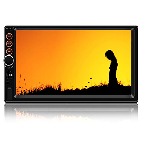 - ♪ [7"TOUCH SCREEN, 2 DIN] -- Universal double din in size, it supports 1080P 1024*600 HD video playback. Extra big 7 inch touch screen, easy one finger operation. The panel's button is 7 colors for your choice. You can also adjust the display brightness directly, several levels for your choice. The display colors can be changed and customized.