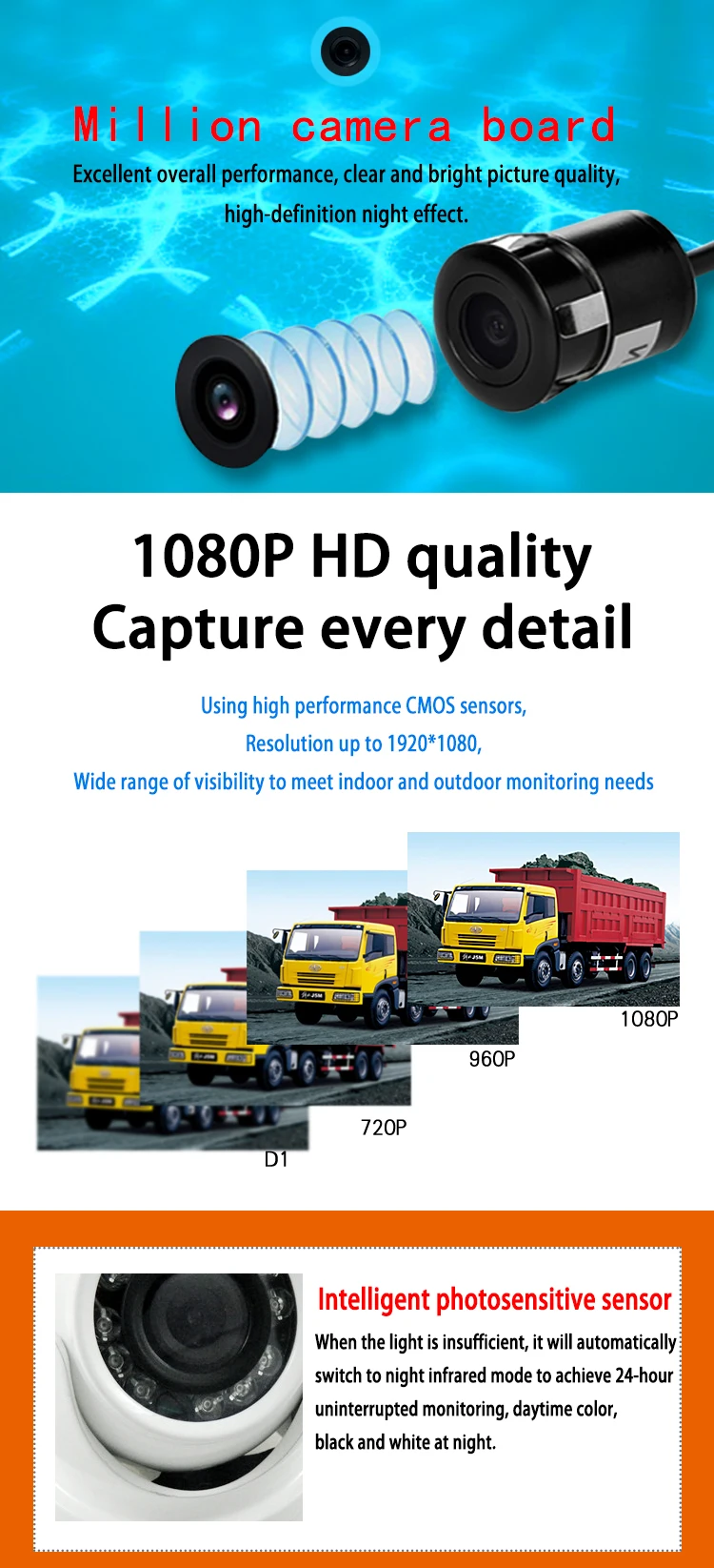 HYFMDVR Universal Waterproof Car Rear View Camera Truck Backup Camera Heavy Duty 18 LED IR Night Vision 12V/24V (No Guide Line)
