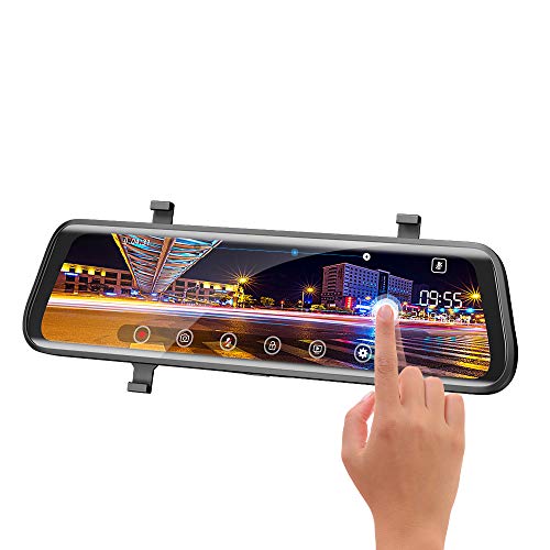 Moucit Mirror Dash Cam, FHD IPS Touch Screen 170° 1296P Front and 150°1080P Rear View Camera Dual Lens with