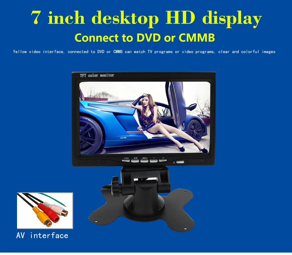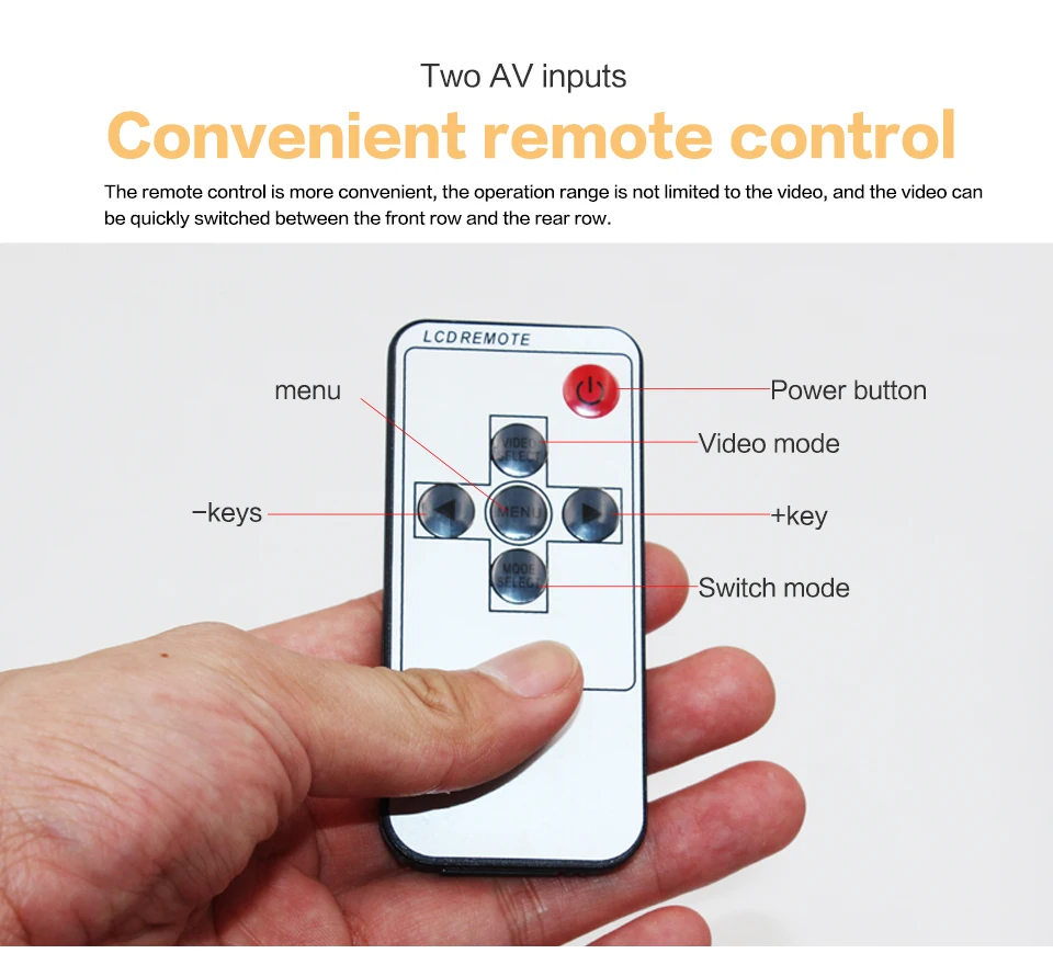 2 Video Inputs: Black AV2 Connector For Reversing, Yellow AV1 Connector for other Video Equipment or Second Side/Front Video. You Can Own Videos.The Monitor Will Automatically Turn to AV2 Showing Reversing Video, Second Camera Can be Added.