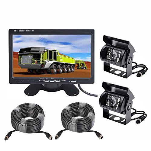 - It came with 2 back up cameras IP68 waterproof rear camera with 4-Pin Aircraft Connector plug,IR infrared lights night vison clearly at night HD Mirror image without grid lines rear view camera and 2.8mm lens (120°horizontal wide view angle )